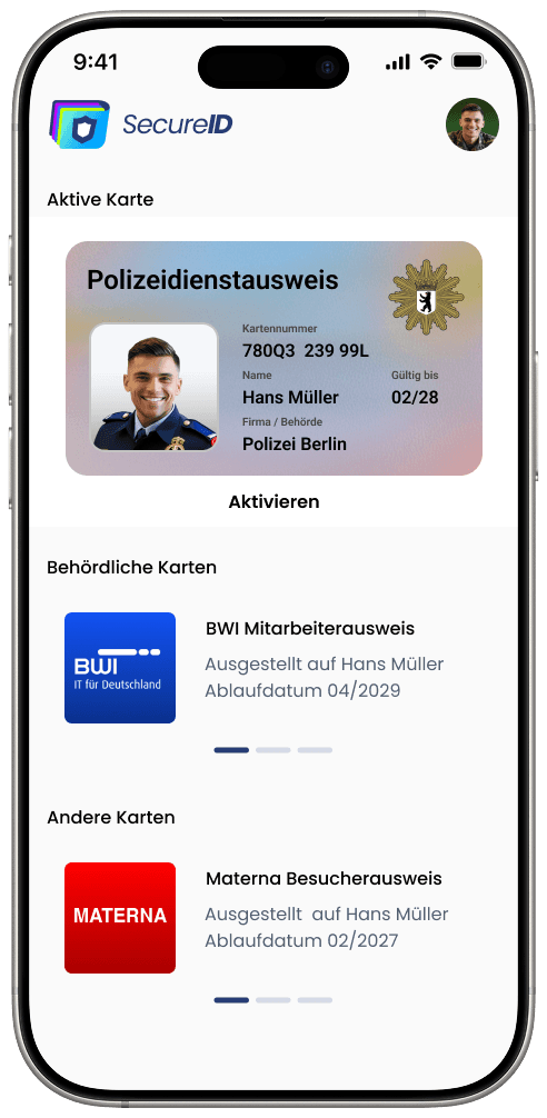 SecureID bringt Ausweis, Zertifikat und Berechtigung sicher auf das Smartphone – BSI-konform, nahtlos integrierbar in bestehende Infrastrukturen und bereit für den Einsatz in sicherheitskritischen Umgebungen.